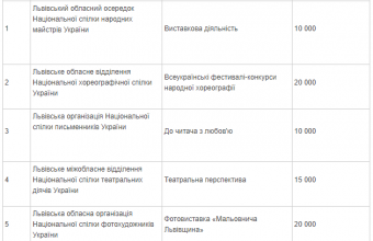 «Цьогоріч фінансування збільшено, загальна сума у 2019 році на підтримку конкурсних пропозицій становить 800 000 гривень. На реалізацію мистецьких проектів серед ГО передбачено 400 000 гривень, проектів творчих спілок – 100 000 гривень, національних товариств – 300 000 гривень. За підсумками оцінювання конкурсних пропозицій, на засіданні конкурсної комісії, було затверджено перелік переможців», – поінформували також в облдержадміністрації також опублікували перелік переможців конкурсу проектів громадських організацій і творчих спілок.