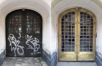 У будинку №5 на вулиці Пекарській вмонтували відреставровану вхідну браму. Її особливість полягає у тому, що зовнішня конструкція, як і всі декоративні елементи, виконані з латуні. Справжню цінність брами реставратори відкрили після зняття нашарувань старої фарби.