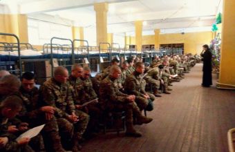 «У день Різдва Христового військові капелани Львівської Архиєпархії УГКЦ - отець Михайло Білецький та піддиякон Юрій Балух – молилися Святу Літургію зі солдатами строкової служби Збройних Сил України у 184-му Навчальному центрі Національної академії сухопутних військ імені гетьмана Петра Сагайдачного. По завершені Святкової Божественної Літургії капелани вітали військових із світлим празником Різдва Христового, колядою прославляючи Новонародженого Спасителя.