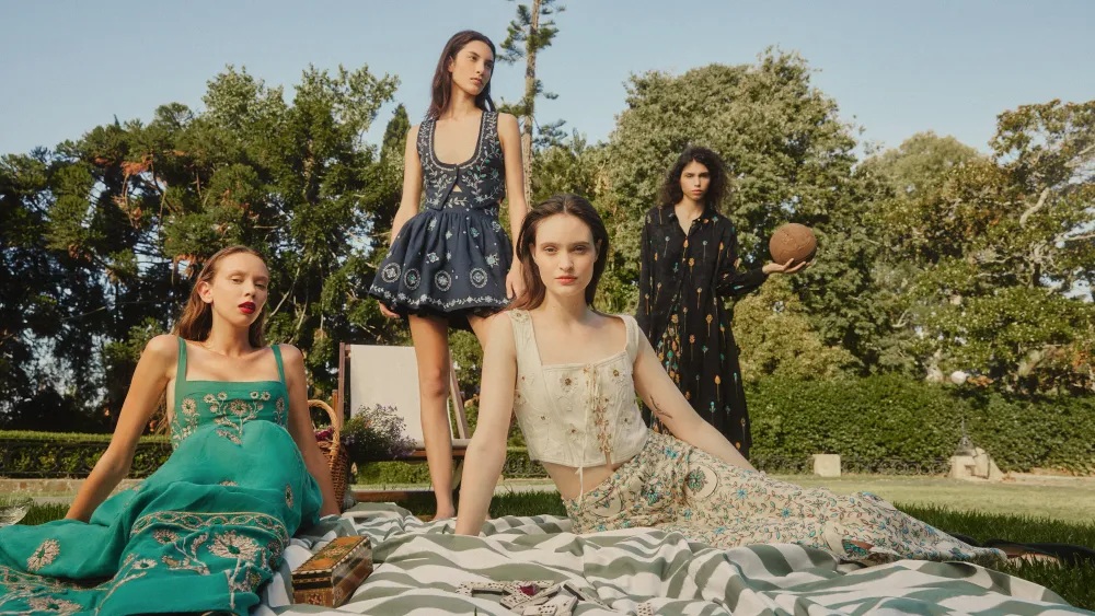 Zimmermann, Scarlett Poppies та інші формують образ нової романтики. Це не про приторність, а про силу в м’якості: пастельні сукні з вишитими квітами, об’ємні туніки, шорти з мереживом, легкі топи з відкритими плечима.