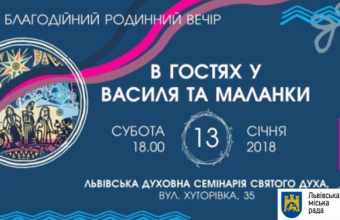 У суботу, 13 січня, о 18.00 у Львівській духовній семінарії Святого Духа на вулиці Хуторівка (№35) розпочнеться благодійний вечір родинного святкування старого Нового року «В гостях у Василя та Маланки».