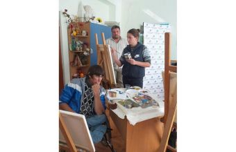 Також пані Оксана запросила свою коліжанку-художницю Оксану Князевську, яка допомагала неповносправним чаклувати пензлем і давала корисні поради щодо художнього мистецтва. Усі учасники дійства були в захваті від роботи і зосереджено працювали аж чотири години.