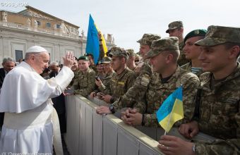 «Святіший Отець привітався з військовиками, які брали участь у військовому паломництві до Люрду, та поблагословив їх. Серед них булі ті, які отримали бойові поранення під час виконання завдань в зоні АТО.