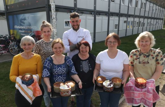 Напередодні Великодня, у Великий Четвер, у модульному містечку на Сихові панувала святкова атмосфера. Вимушено переміщені українки спільно з львівським кондитером Ігорем Герилівим випікали авторську паску на основі особливої закваски – французької. Це вперше у містечку готували таку паску – минулі три роки її випікали за рецептами господинь зі східних та південних регіонів України.