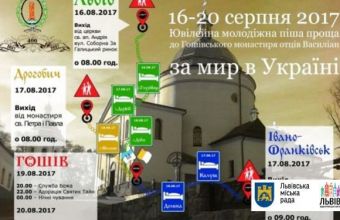 У Львівській міськраді анонсували: «16-20 серпня відбудеться ювілейна молодіжна піша проща до Гошівського монастиря отців Василіян за мир в Україні. Учасників запрошують долучатись із трьох локацій – Львова, Дрогобича та Івано-Франківська».