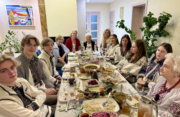 На фото за столом з кутею, варениками, рибою, грибною підливою та іншими притаманними для Святвечора стравами, сидять, зокрема, сини мера Львова, дружина, мама, теща.