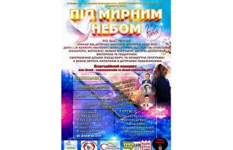 Справжнє свято для Вас та Вашої родини «Під мирним небом». Благодійний захід в підтримку дітей, що постраждали від війни! Відкриття: 14.00. Концертна програма: 17.00».