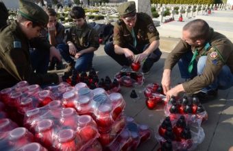 Упродовж всього дня волонтери розпалюватимуть та розставлятимуть білі та червоні лампадки на могилах цвинтаря.