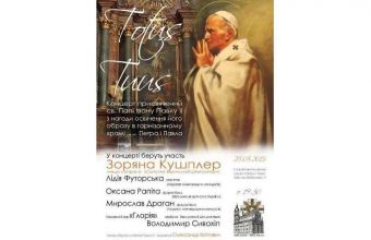 Із цієї нагоди також відбудеться концерт сакральної музики «Totus Tuus» пам’яті Івана Павла ІІ, під час якого виступлять відомі виконавці. Серед них – солістка Віденської опери Зоряна Кушплер, яка народилася й виросла у Львові.