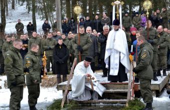«На Водохреще у водоймах полігону Львівського полку Національної гвардії України майже триста військовослужбовців Львівського гарнізону занурилися у Хрещенську купіль. За традицією купанню передувала Служба Божа, яку провели у військовій церкві, розташованій на території Львівського полку Національної гвардії України.