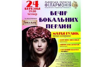 Сьогодні, 24 березня, о 19:00 у Львівській обласній філармонії на вулиці Чайковського відбудеться прем’єра твору Мар’яни Лисенко «П’ять пісень на вірші Лесі Українки», які виконуватиме британська солістка українського походження Марія Гулик. Про це повідомили «Щоденному Львову» в обласній філармонії, де також розповіли подробиці: