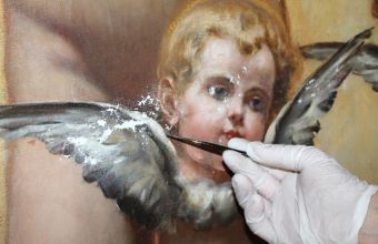Реставратор обережно торкається пензлем маленьких білих цяточок на полотні, де з’явилися осипи фарби. Перед цим полотна досліджувала фахівець науково-дослідної лабораторії Львівського національного музею Мирослава Друль, використовуючи ультрафіолетове та інфрачервоне освітлення. Хімічний аналіз дозволив реставратору максимально наблизити пігмент фарби до того, що використовували художники, коли творили ці шедеври станкового малярства.