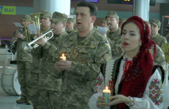«У межах заходу, який відбувся в холі терміналу «А» військові музиканти та колектив львівського муніципального хору «Гомін» виконали на загал музичні та пісенні твори українських композиторів. Заступник начальника військового оркестру Національної академії сухопутних військ імені гетьмана Петра Сагайдачного, підполковник Богдан Катриняк, розповів під час брифінгу для представників ЗМІ: «Для присутніх прозвучали три композиції. Звитягу наших хлопців ми вшанували виконанням твору Дмитра Бортнянського «Молюсь за тебе сила любові», духовного гімну України авторства Миколи Лисенка «Боже великий, єдиний» та композиції Бориса Шклового «Інтро». Перші два твори просякнуті смутком за тими патріотами, які вже ніколи не повернуться до рідних домівок, бо ціною власного життя зупинили самовпевнених кремлівських найманців. Останній, навпаки, випромінює позитивні хвилі віри в те, що наш народ врешті-решт переможе ворога й на славній українській землі запанує мир і злагода».