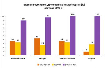 З огляду на ці дані у квітні 2021 року найбільш гендерночутливими друкованими ЗМІ (за дотриманням гендерного балансу і кількістю фемінітивів) стала газета «Львівська пошта» (56%). Друга позиція – у газети «Експрес»» (55%).