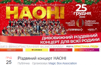 25 грудня з 20:00 по 23:00 у Львівському національному академічний театрі опери та балету імені Соломії Крушельницької відбудеться святковий різдвяний концерт Національного академічного оркестру народних інструментів.