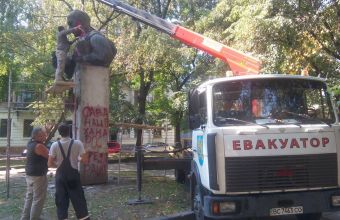 У Львові демонтували пам’ятник радянському письменнику Степану Тудору, встановлений у центрі міста на площі Євгена Маланюка