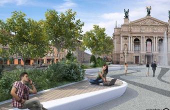 Площу перед оперним також оновлять. Тут будуть клумби, дерева, які захищатимуть її від проїжджої частини. Лавочки вмонтують у зелену зону, вони будуть з розетками для зарядки телефонів і ноутбуків, вай-фаєм і доступом до онлайн-бібліотеки. Атракціони, дитячі машинки, столики заберуть.