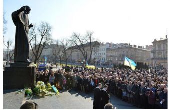 «Віддати шану національному пророкові разом із представниками громадськості, духовенства, лауреатами Національної премії імені Тараса Шевченка прийшли голова Львівської обласної ради Петро Колодій, депутати обласної ради Ярослав Качмарик, Андрій Корнат, Юрій Підлісний. Керівництво області та міста, депутати, лауреати Національної премії України імені Тараса Шевченка та представники громадськості поклали квіти до пам’ятника Кобзареві. Потім військовий капелан Гарнізонного храму святих апостолів Петра і Павла, отець Степан Сус, відслужив молебень за Україну та її Героїв.