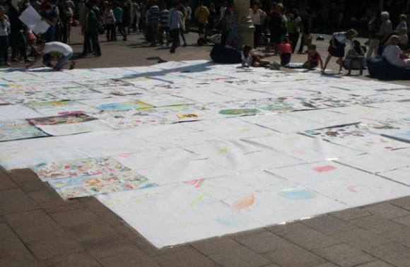 Площу перед Національним академічним театром опери та балету імені Соломії Крушельницької вкрили десятки малюнків.