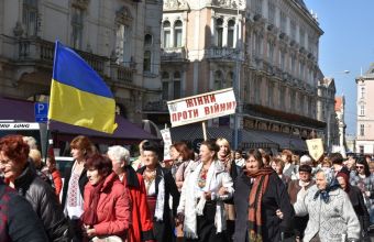 Учасники святкування 100-річчя Союзу українок із різних районів Львівщини пройшли урочистою ходою центральними вулицями Львова, де опісля біля фігури Матері Божої прочитали молитву, а також декларацію «Жінки проти війни».