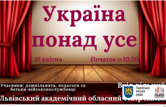 16 квітня з 10.00 у Львівському академічному театрі ляльок на площі Данила Галицького відбуватиметься конкурс «Україна понад усе».