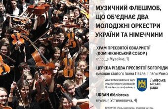 Про це повідомили в прес-службі Львівської міськради, де також розповіли: «Музичний флеш-моб об’єднає два молодіжні оркестри – Федеративний молодіжний оркестр Німеччини «BJO» та Молодіжний симфонічний оркестр України «YsOU». Концерти камерної музики за участі виконавців обох оркестрів розпочнуться паралельно у Домініканському соборі (храм Пресвятої Євхаристії на площі Музейній) і в церкві Різдва Пресвятої Богородиці (майдан святого Івана Павла II – папи Римського) 26 липня о 19.30. У програмі камерних концертів прозвучать твори як відомих класиків (В. А. Моцарта та Ф. Мендельсона), так і унікальні композиції, які ще ніколи не звучали в Україні (Ф. Гласса, Е. Кріспо, А. Кона)».