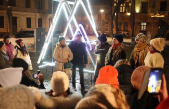 На площі Маланюка провели різдвяно-мистецьке дійство. Біля скульптури Франса Ксавера Моцарта колядував етногурт «Курбаси» та відкрили символічну музичну ялинку. До дійства долучився і міський голова Львова Андрій Садовий з дружиною Катериною Кіт-Садовою.