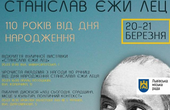 Команда офісу «Львів – Місто літератури ЮНЕСКО» спільно з громадським діячем, журналістом і перекладачем Андрієм Павлишиним та управлінням культури Львівської міської ради організує 20-21 березня низку подій до 110-ї річниці від Дня народження Станіслава Єжи Леца.