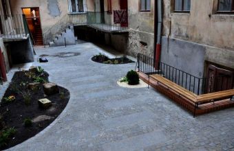У Німецькому товаристві міжнародного співробітництва розповили: «Ще кілька місяців тому внутрішнє подвір’я перебувало у дуже поганому стані. Після того, як Галицька районна адміністрація відремонтувала каналізацію, в рамках програми співфінансування спільно з мешканцями було проведено перепланування облаштування подвір’я. Темний вузький двір мав не лише перетворитись на привабливий простір, але й пропонувати мешканцям гарний вид з вікна протягом усього року. Зараз цей впорядкований простір важко впізнати – відновлена торцева стіна, з’явилося чітке планування, нове мощення та ділянки, де мешканці вирощуватимуть квіти, зокрема, також клумба на підвищенні уздовж брандмауера. Дві лавочки та дерев’яна тераса підвищують привабливість цього місця і, зменшуючи кількість кам’яних елементів, надають подвір’ю теплоти».