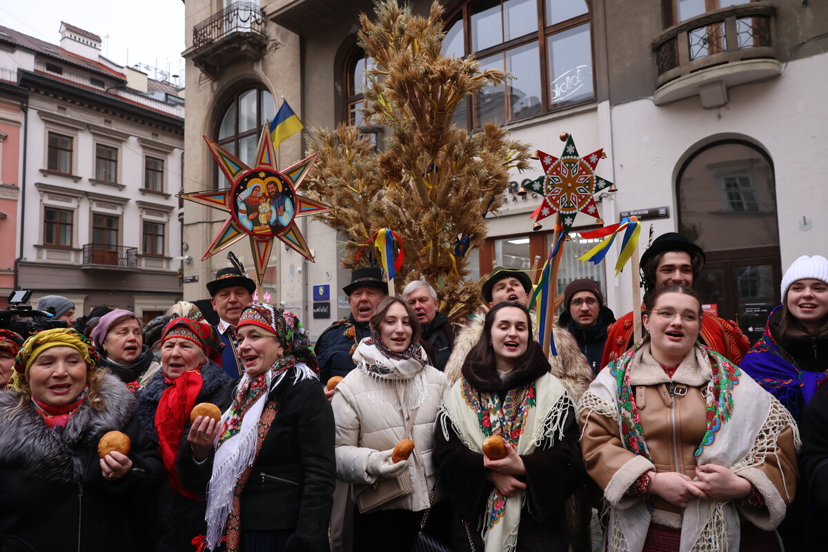 Під час святкової ходи, що розпочалася на площі Ринок, лунали колядки від співочих колективів, а по завершенню містян частували пампухами.