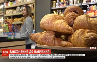 Про це повідомила в п’ятницю, 17 січня, «Телевізійна служба новин» каналу «1+1», де також розповіли: «Покажи оцінку 10-12 балів з української мови – і отримай безкоштовний круасан. Таку акцію-заохочення вигадали у Львові. Підприємці, які є власниками двох крамниць і самі випікають круасани, вирішили у такий спосіб популяризувати рідну мову».