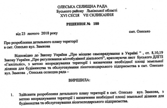 «Нещодавно Олеська селищна рада дала згоду на побудову безпосередньо перед Олеським замком лісопильного заводу! Тобто вирішила покращити вид середньовічного замку… Тартак збираються будувати у межах охоронної зони замку. Тобто грубо ламаючи законодавство», – написав також Тарас Возняк
