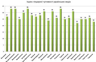 Виходячи із загальних кількісних показників та пропорційності присутності жінок і чоловіків у медіа (у відсотковому співвідношенні), сформовано індекс гендерної чутливості журналістики у регіональному розрізі (відсоток експерток, героїнь і вживання фемінітивів). Найвищі показники отримали волинські, дніпропетровські, запорізькі та рівненські медіа, найнижчий показник – у миколаївських, херсонських, черкаських медіа.