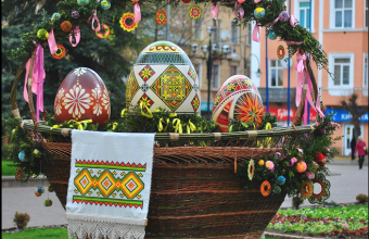Великодній кошик з писанками прикрасив центральну площу Самбора біля ратуші.