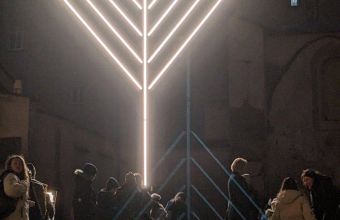 Традиційний дев’ятисвічник, який запалюють упродовж восьми днів свята Хануки, у місті встановлюють уже вдруге. Торік у Львові вперше за понад 80 років встановили ханукальну менору.