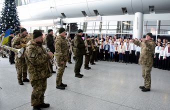 «Артисти виконали музичні твори «Тишина», «Честь і слава», а також духовний гімн нашої Батьківщини «Боже Великий Єдиний» Миколи Лисенка. Начальник військового оркестру - військовий диригент Академії підполковник Богдан Катриняк розповів присутнім, що сьогодні в аеропортах Києва, Львова, Одеси, Дніпра, Запоріжжя, Харкова та Івано-Франківська, а також містах Чернігів і Вінниця артисти сьогодні також вшанують «кіборгів», – поінформували також в академії.