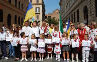 Після цього розпочався марш вишиванок. Колону очолювали директори суботньої школи і садочку, представники українського посольства в Італії та депутати. Вони несли українські та італійські прапори.