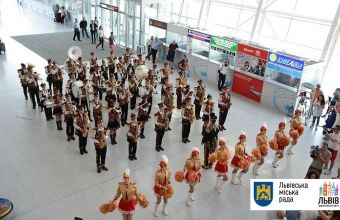 У п’ятницю, 4 травня, у Міжнародному аеропорту «Львів» імені Данила Галицького відбулося музичне запрошення на святкування Дня міста від духового оркестру «Львівські фанфари».