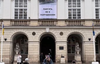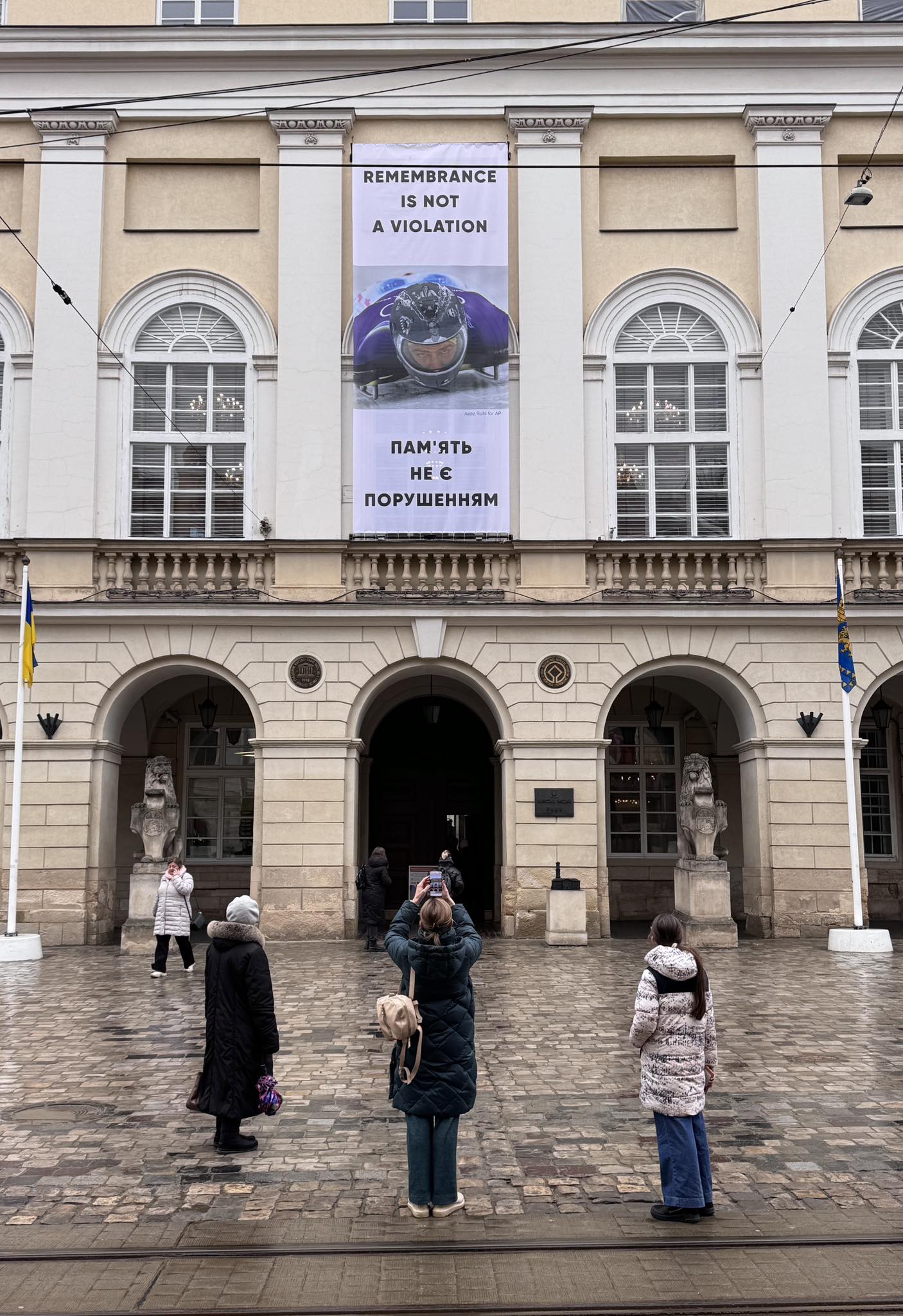 На львівській Ратуші вивісили банер з фото Владислава Гераскевича, якому заборонили виступати на Олімпійських іграх в шоломі з фото убитих росією українських спортсменів