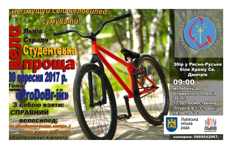У суботу, 30 вересня, з ініціативи Центру студентського капеланства Львівської архієпархії УГКЦ, відбудеться молодіжна велопроща до села Страдч.