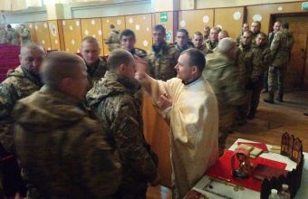«А в день Різдва Христового військові капелани Львівської Архиєпархії УГКЦ молились Святу Літургію та колядували разом із солдатами контрактної та строковоі служби ЗСУ у 184-му Навчальному центрі академії сухопутних військ імені гетьмана Петра Сагайдачного. По завершені Святкової Божественної Літургії капелани вітали військових із світлим празником Різдва Христового, колядою прославляючи Новонародженого Спасителя. Більшість молодих юнаків вперше святкують Різдво поза домом, тому присутність душпастирів, спільна молитва та коляда допомагає відчути їм дух свята», – повідомили також на інформаційному порталі пасторального та соціального служіння капеланів Львівської архиєпархії УГКЦ «Капеланство.info», де також опублікували фото з Яворівського полігону.