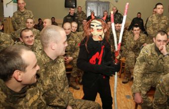 «Прикарпатці подолали понад півтори сотні кілометрів, аби показати військовослужбовцям різдвяний вертеп і заспівати колядки. Цю святкову програму митці підготували спеціально перед візитом до 184-го Навчального центру.