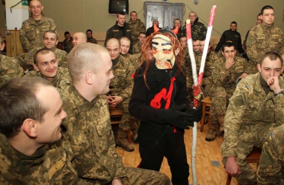 «Прикарпатці подолали понад півтори сотні кілометрів, аби показати військовослужбовцям різдвяний вертеп і заспівати колядки. Цю святкову програму митці підготували спеціально перед візитом до 184-го Навчального центру.