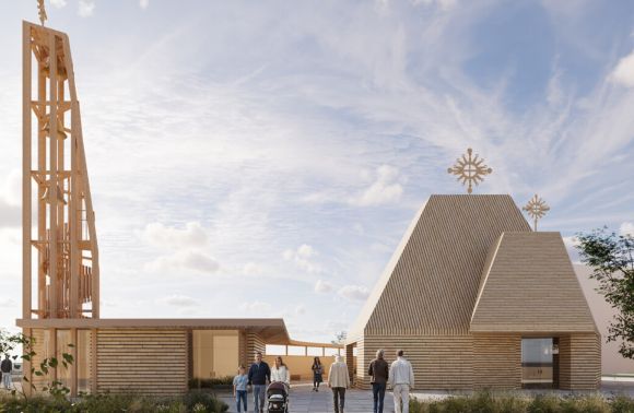 Візуалізація проєкту переможців, модерний храм з високою дерев'яною каплицею поруч Композиція споруди створена за церковними канонами: вівтар - на схід, головний вхід із заходу, а навколо можна буде пройти процесією. Усередині передбачено місце для різдвяного вертепу, яке освітлюватиметься природним світлом. У підземній частині храму облаштують трапезну (їдальню), яка зможе слугувати укриттям, а також санвузли та ліфт для маломобільних. На території також збудують каплицю, дзвіницю та навчальний клас, що створить затишне подвір'я, відкрите для мешканців району.