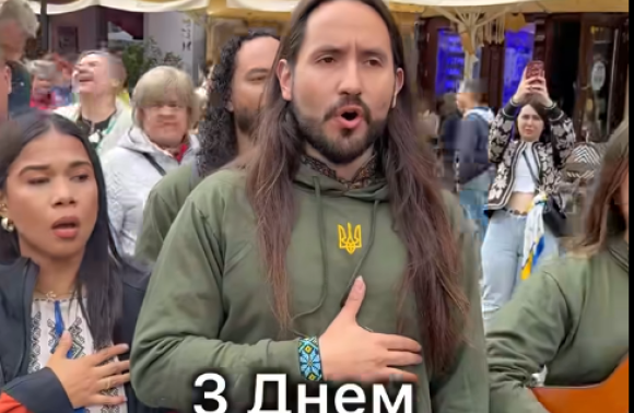Під відео він написав: "Колумбійці та українці єднаються у Львові: гімн УНР 1917 року звучить у серці міста".