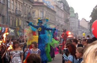 17.15-18.00 - карнавальна хода за участю театрів України, Польщі, Чехії, Португалії, Росії, Литви, Білорусії.