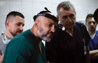«Наша основна мета – допомогти найважчим пацієнтам з мінно-вибуховими травмами, а також передати досвід виконання найсучасніших технологій українським лікарям», - сказав Манош Абрагам, MD, керівник гуманітарного підрозділу AAFPRS, відділення оториноларингології, хірург.