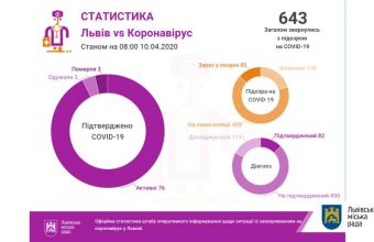 Загалом за весь період карантину до Львівської обласної інфекційної лікарні звернулись 643 особи, госпіталізовані — 215, на амбулаторному лікуванні — 428 осіб, виписані — 130 осіб. Зараз у лікарні перебуває 85 осіб, з них в реанімації — 10 осіб, на апаратні ШВЛ — 2 особи. Загалом коронавірусну інфекцію не виявлено у 450 осіб, виявлено — у 82 осіб, три людини померли. Троє пацієнтів одужали.