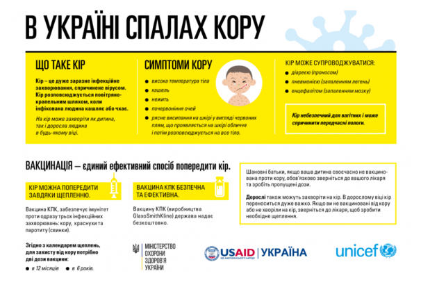 А з початку року в Україні захворіли на кір 42 040 людей (15 864 дорослих і 26 176 дітей). Від ускладнень кору померли 15 (четверо дорослих і 11 дітей).