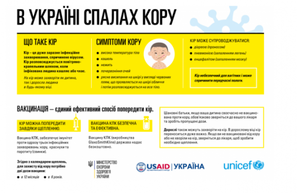 А з початку року в Україні захворіли на кір 42 040 людей (15 864 дорослих і 26 176 дітей). Від ускладнень кору померли 15 (четверо дорослих і 11 дітей).